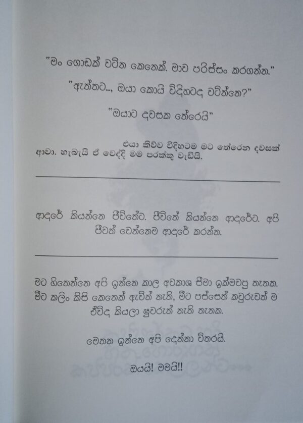 රිදුන බව නොම අඟවමි බැරිවෙලාවත් කොතනකදිවත් ” ආදරේදැ ? ” යි නොඅසමි