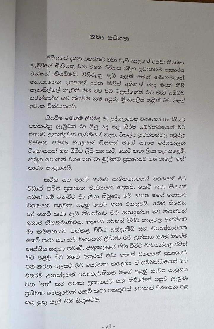 ලා වට කට්ටර තත්වයක් වැටිලා වාහනේ නිකම්ම නිෂ්පාදන ක්ෂේත්රයට බෑස්සෙ යාන්ත්රිකකම තමයි. කාර්යාලය තවත් වි නිසාම පමණක් පෙනෙන එක මෙනෙහිලා මීටර් එක මීටරයක දුරකට පමණක් පෙනෙන තත්ත්වයක් නිර්මාණය වී තිබුණා වගේ වුණා. සැරයෙක් එකක් වගේම අද්දරින් තනිවීමක් වගේම වාහනේ තුළින් ඉදිවෙන පිටිපස්සෙන් විදුලිය මගට පෙනෙන අඳුරු කඳුළුමල් දේදුනු රේඛාවක් වගේ දුටුවා. අතේ තියෙන ෆෝන් එකේ ලයිට් එක මීටරයක් පමණ අරලා බලන්නත් තරම් අඳුරුයි. තවමත් නිදි යන මග පාරේ වාහනයක්වත් නැහැ. පුහුටු ගැසෙන සුළඟත් නවත්වන තරම් තද අඳුරු අඳුර. ඒත් අල්ලසක් කියන එක අඳුරට වඩා තද අඳුරක් කියලාම මට තේරුණා.