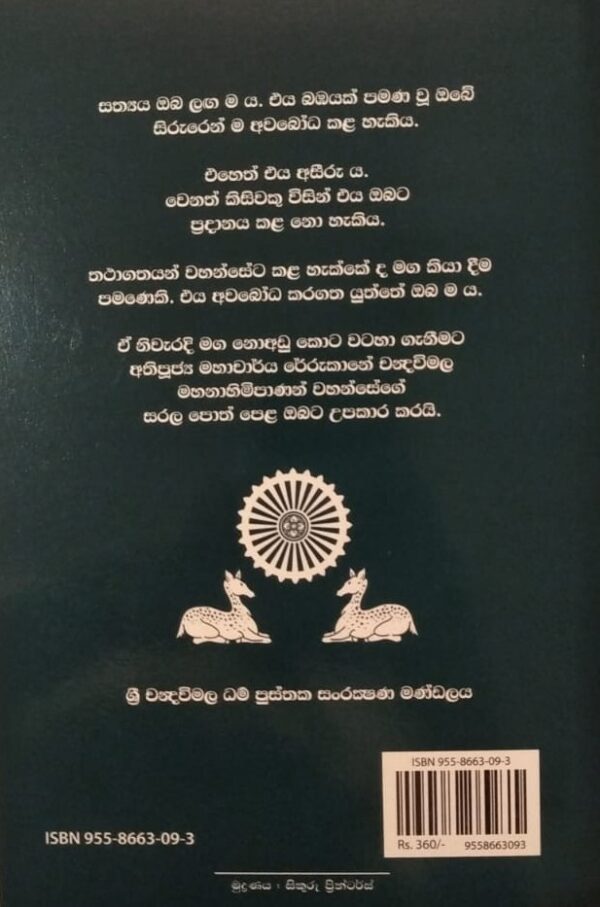 ඒ නිවැරදි මග නොඅඩු කොට වටහා ගැනීමට අතිපූජ්ය මහාචාර්ය රේරුකානේ චන්දවිමල මහනාහිමිපාණන් වහන්සේගේ සරල පොත් පෙළ ඔබට උපකාර කරයි.
