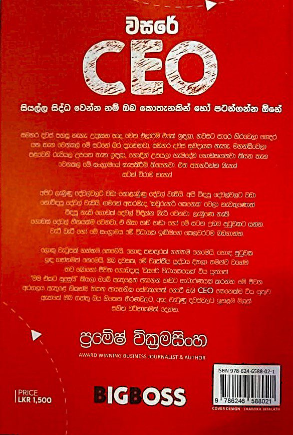 ලොකු වැටුපක් ගන්නම් කෙමෙයි හොඳ තනතුරක් ගන්නම නෙමෙයි. හොඳ පුටුවක ඉඳ ගන්නවත් නෙමෙයි. ඔබ දවසක, මේ වෘත්තීය යුද්ධය දිනලා තමන්ට වගේම නව බොහෝ ජීවිත ගොඩදාපු ‘වසරේ විධායකයෙක් විය යුත්තේ මම ඒකට සුදුසුයි කියලා ඔබේ ඇතුළෙන් ඇහෙන හඩට සාධාරණයක් කරන්න. මේ රිවන අරගලය ඇතුළේ නිකන්ම නිකන් ආයතනික සේවකයෙක් නොවී ඔබ CEO කෙනෙක්ම විය යුතුව ඇත්තේ ඔබ ගත්තු බය හිතෙන තීරණ වලට ඇද වැටුණු දවස් වලට ඉහළම සිදුක සහිත වටිනාකමක් දෙන්න.