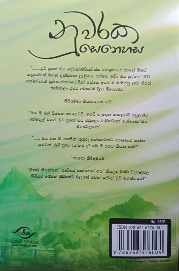 “……. චූටි පුතේ ඔය දේවානම් පියතිස්ස රජතුමාගේ කාලේ මීගස් කැපුවොත් මරණ දණ්ඩනෙ ලැබුණා. පස්සෙ ඉතිං ඔය සුද්දෝ 1833 කෝල්බෲක් ප්රතිසංස්කරණවලින් පස්සෙ අපේ ම මිනිස්සු ලවා මීගස් කප්පවලා ඒ වට අවසරත් දීලා තියෙනවා.”