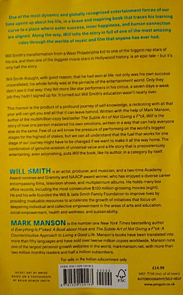 One of the most dynamic and globally recognized entertainment forces of our time opens up about his life, taking the work of learning to the point where external success, internal happiness, and human connection align in a bold and inspiring book. Will tells the story of an amazing journey through the world of music and film that has ever been experienced.